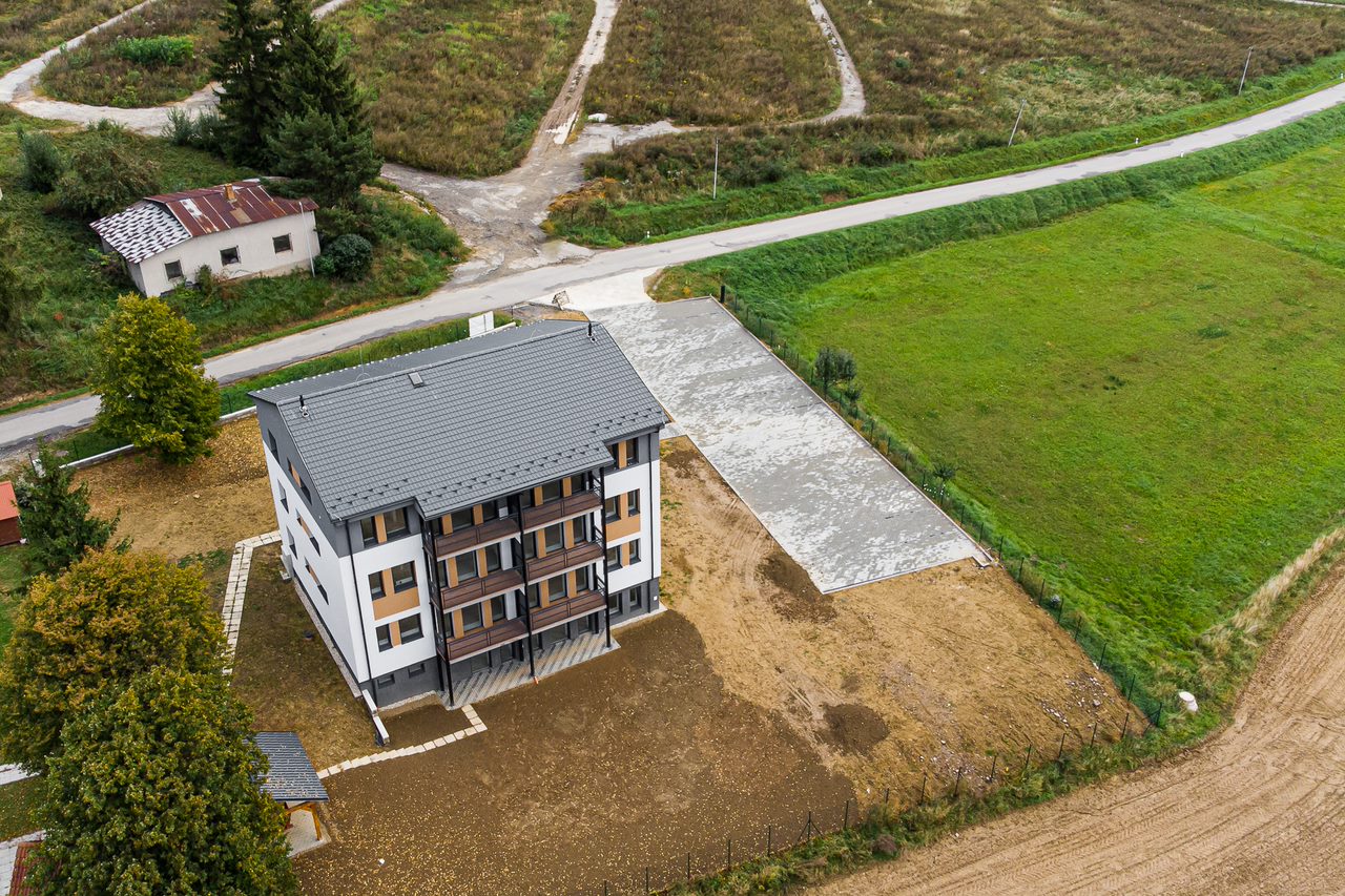 Predstavujeme Vám ponuku nového bytového domu v obci Vaniškovce, v tesnej blízkosti Raslavíc a v pohodlnej vzdialenosti od Bardejova či Prešova. Bytový dom umiestnený na súkromnom ohradenom pozemku s vlastným parkoviskom, ponúka príjemné bývanie s nádherným výhľadom do okolia. Nachádza sa v ňom sedem 3-izbových bytov s výmerami od 70 m2 do 80 m2. Ku každému bytu prináleží veľký balkón, murovaná pivnica v suteréne bytového domu, 2x parkovacie miesto a podiel na priľahlom pozemku s výmerou viac ako 2 000 m2.